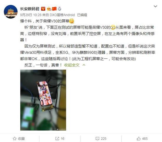 荣耀V30谍照原图链接:(截图来源:长安数码君)