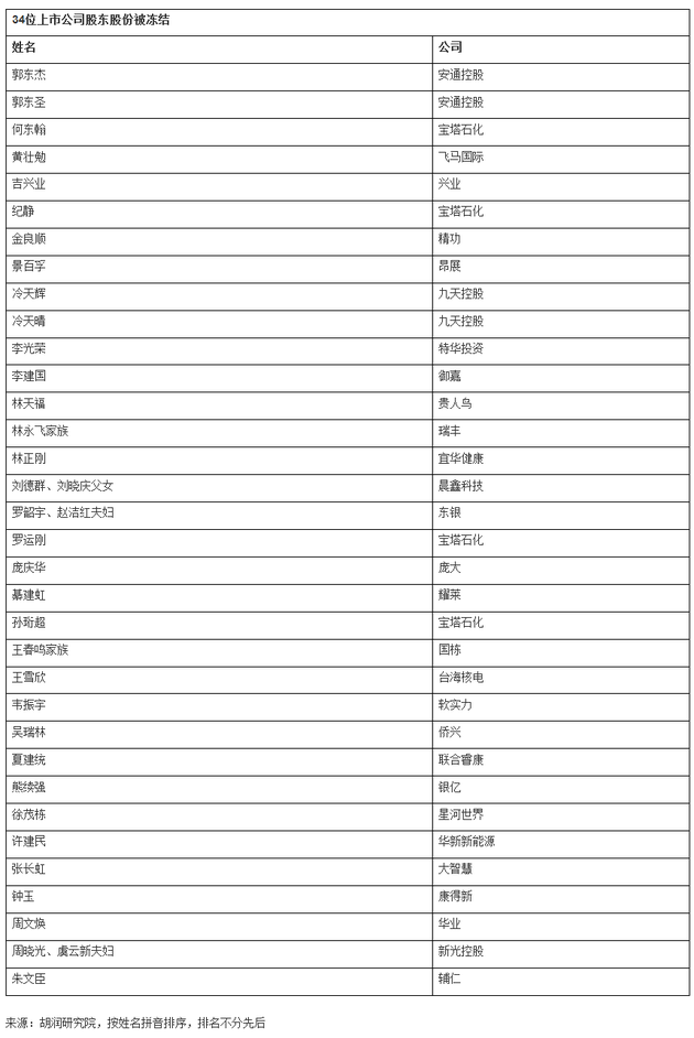 此外,有3位去世,3位离婚,2位申请破产重整,34位上市公司股东股份被冻结。