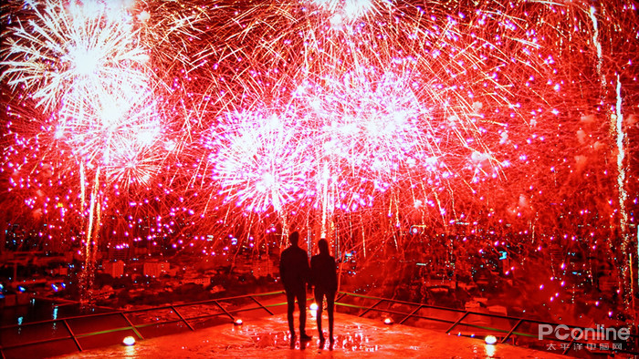 海信E52D支持4K HDR解码,在遇到较暗的画面时,能够通过HDR解码来增强画面的亮暗层次感,画面中烟花亮度足够高,而背景远处的房屋、灯光等暗处细节也同样清晰可见。