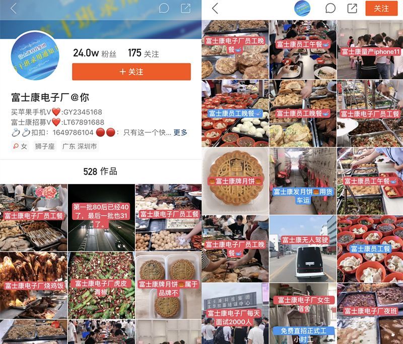 快手、抖音上的富士康员工