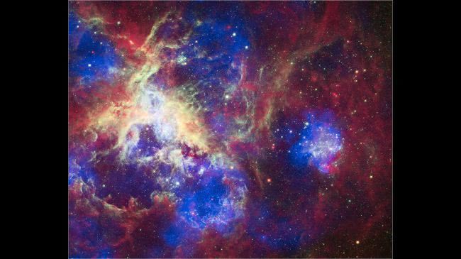 蜘蛛星云又称剑鱼座30(30 Doradus),它蜘蛛般的外形使它得名“蜘蛛星云”。它既是已知的最大星云,也是本星系群(Local Group,包括银河系在内的一群星系)中最明亮、最活跃的恒星形成区域,位于距地球17万光年之遥的大麦哲伦星云中。