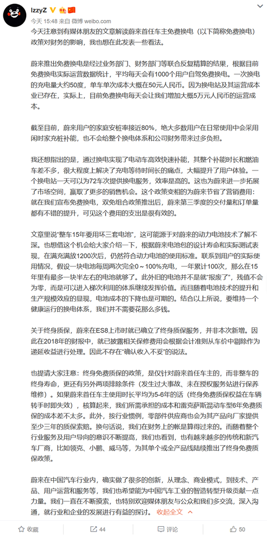 (原标题:蔚来副总裁回应免费换电质疑:每天5万元运营成本)