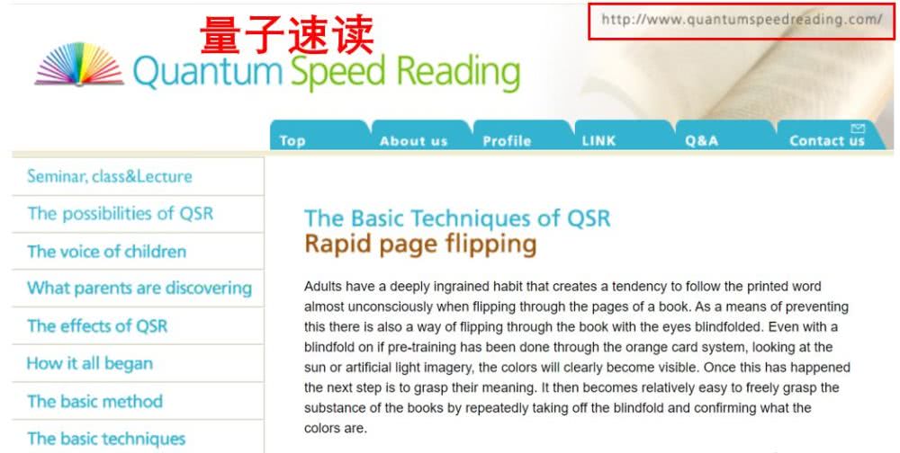 网站名直接就叫Quantum Speed Reading!这就是QSR正本清源的老巢!不像中国那些网站支支吾吾、用词玄幻,一看就是骗钱的,这个网站内容丰富,啥都敢说,把QSR课程介绍得清清楚楚。