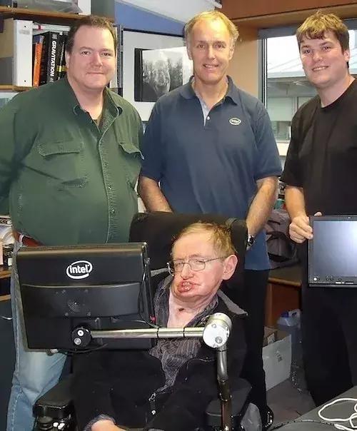 1997年,英特尔创始人戈登·摩尔表示将承包霍金的硬件设备,霍金欣然接收。英特尔重新设计了霍金的轮椅,将电脑集成在轮椅上,用轮椅的电池供电,并每隔两年将硬件升级一次。
