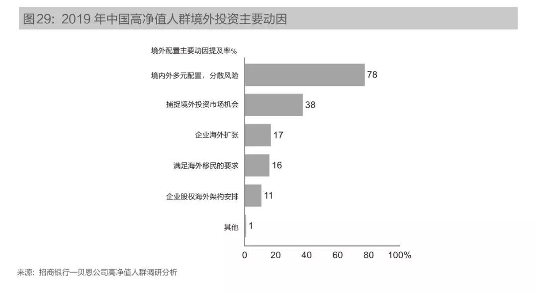 在动荡的国际形势下,全球经济下行压力持续、境外投资收益不及预期;中国保持相对平稳的发展势头,“一带一路”、国内资本市场加快推进开放程度和继续推动中国经济发展新机遇。高净值人群更加看好中国机会,投资重心回归国内。