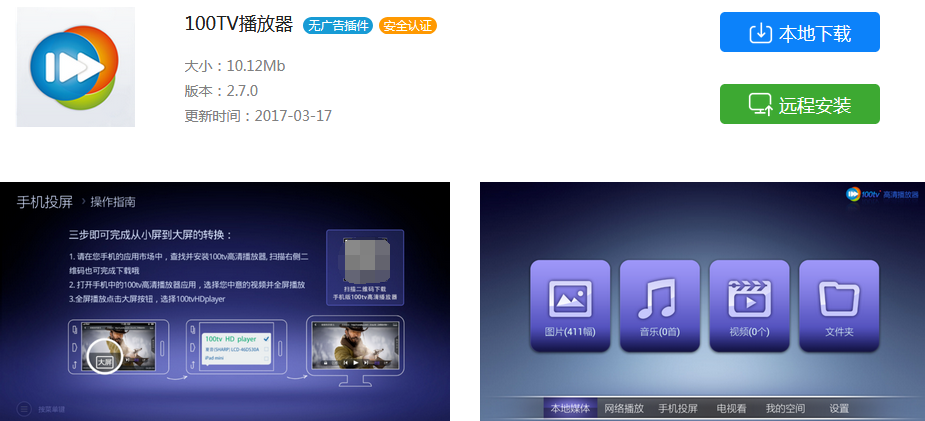 100tv高清播放器电视版,大屏看片儿更有料!扫硬盘、搜内网、投手机、导列表,只有想不到,没有播不了!