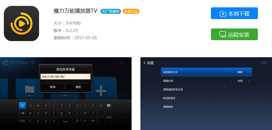 魔力万能播放器TV版是真正的万能本地播放。魔力视频播放器TV版支持超过170种格式的视频、音频等格式文件、包括:mkv、H.264、rmvb、mov、avi、mp4甚至连古老的VCD格式都可以直接进行播放,再也无需转码,配合其专用解码器使视频播放更流畅,画面更清晰细腻。
