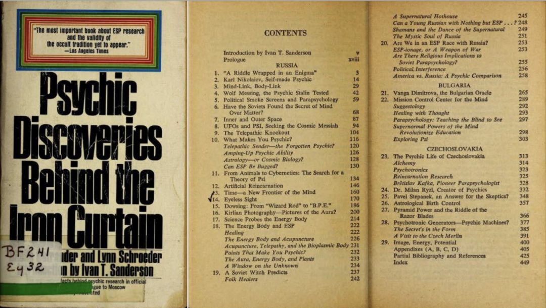 ● 希拉·奥斯特兰德(Sheila Ostrander)和林恩·施洛德(Lynn Schroeder)著:《铁幕背后的超自然发现(Psychic Discoveries Behind the Iron Curtain)》