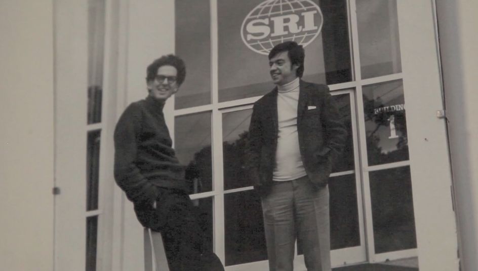 ● 70年代,拉塞尔·塔格(Russell Targ)和哈洛尔德·巴索夫(Harold Puthoff)在斯坦福研究所(SRI)门口。这两个人的名字在后面会不断出现