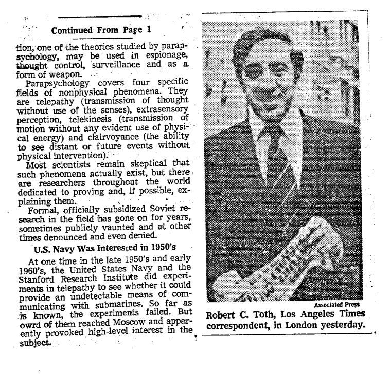 在苏联,不断有与特异功能研究相关的人被驱离出境。如1977年,洛杉矶时报记者罗伯特·托思,便因为涉及有关超心理学的「国家机密」而被克格勃逮捕。
