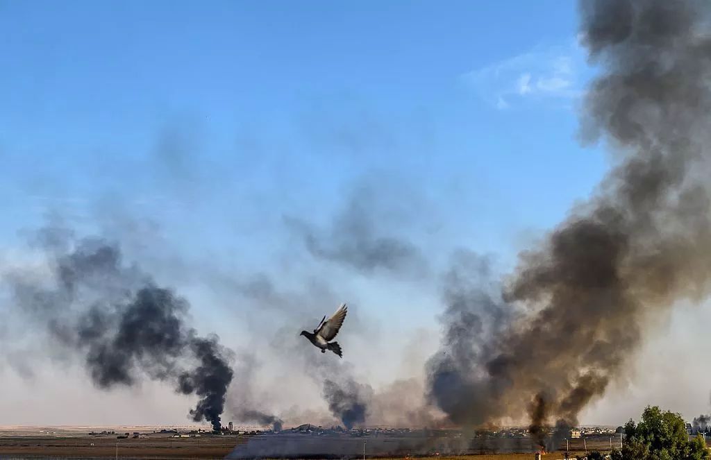 当地时间10月10日,叙利亚边境浓烟滚滚。