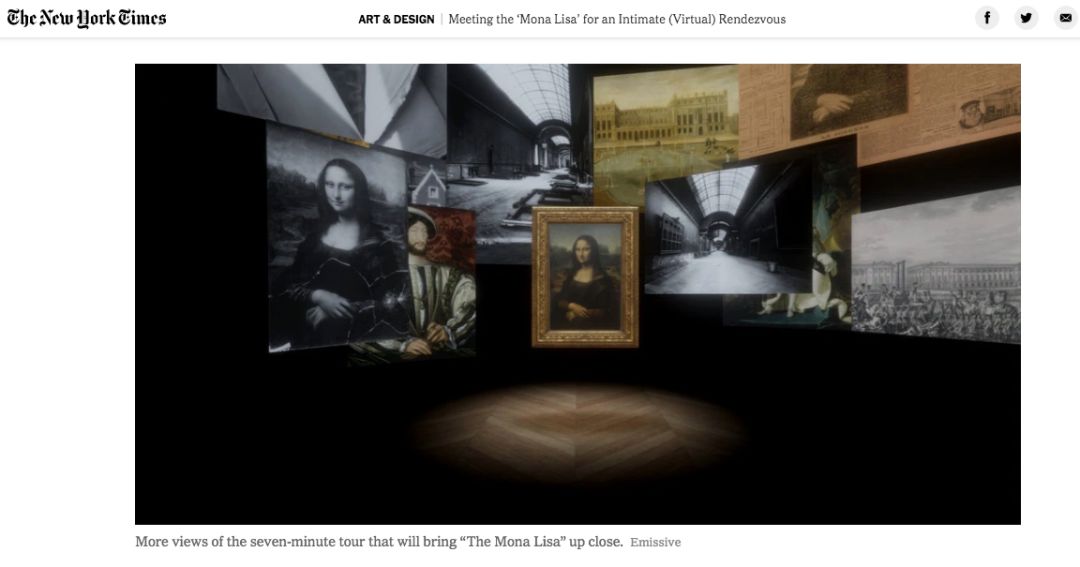 据《纽约时报》报道,作为达·芬奇逝世500周年纪念展览的一部分,卢浮宫将推出名为《蒙娜丽莎:越界视野》的VR展览。