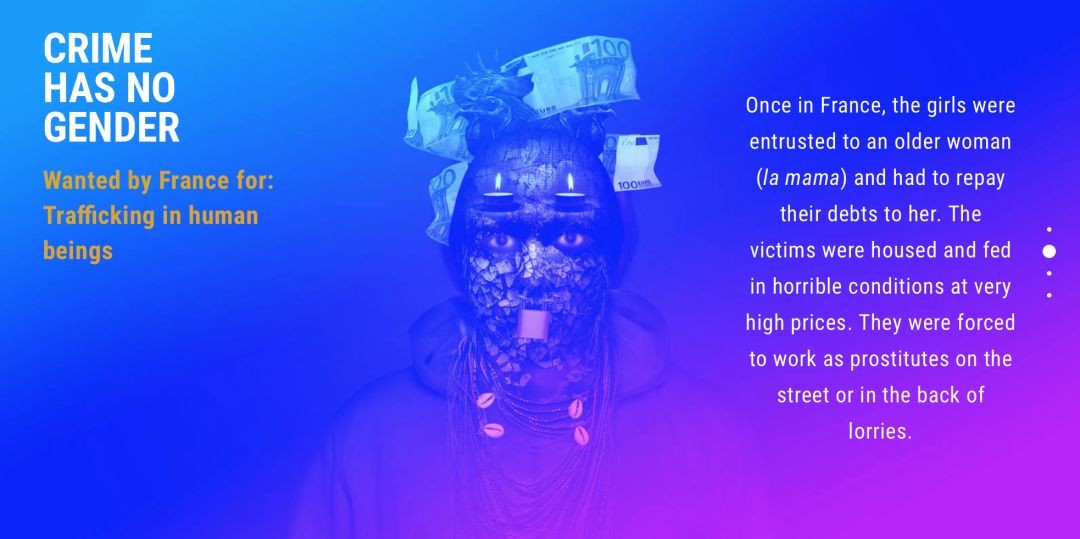 其中,法国头号通缉犯是Jessica Esohe Edosomwan,她被控贩卖人口,将于今年11月受审。Edosomwan所在的犯罪组织从尼日利亚的一些小镇中招募年轻的女孩子,承诺帮助她们前往西欧国家。等她们到达法国后,这些女孩子就被迫卖淫,陷入非常悲惨的境地。Edosomwan自2017年一直在逃,警方认为她可能藏身于法国、德国或比利时。