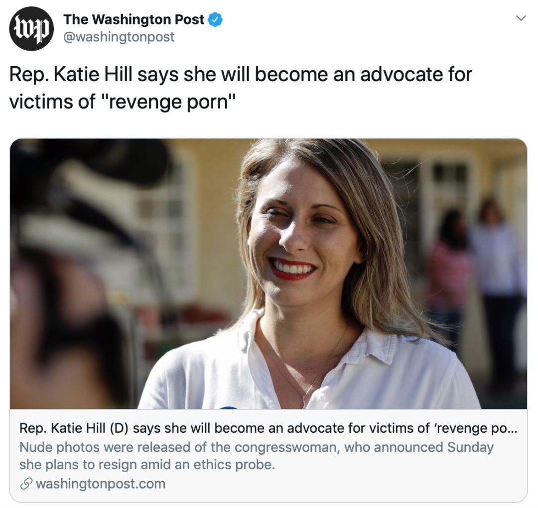 几天前,美国民主党已婚女议员凯蒂·希尔被指与她的一名男性助手存在不正当关系,她否认了;几天后,美媒又曝出她与一名女性竞选工作人员存在不正当关系,且直接曝出了她的一张裸照——希尔扛不住了,最终宣布辞职。