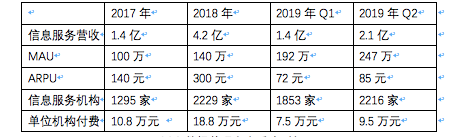 可以看出,在初期的2016年新氧将为医美机构导入订单视为重要营收来源,占比过半,但在2017年之后,商业模式开始调整,为医美机构提供营销的信息服务收入占比不断扩大,截至2019年Q2,信息服务占比已经达到74.2%,成为绝对的支柱板块。
