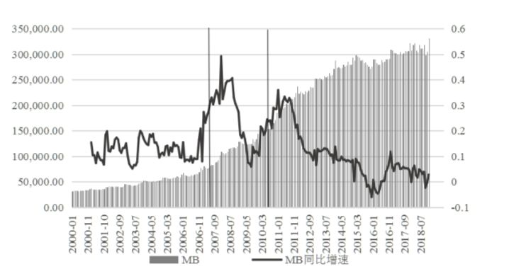 基础货币总量与增速走势 (单位:亿元) 摘自陈佳敏论文