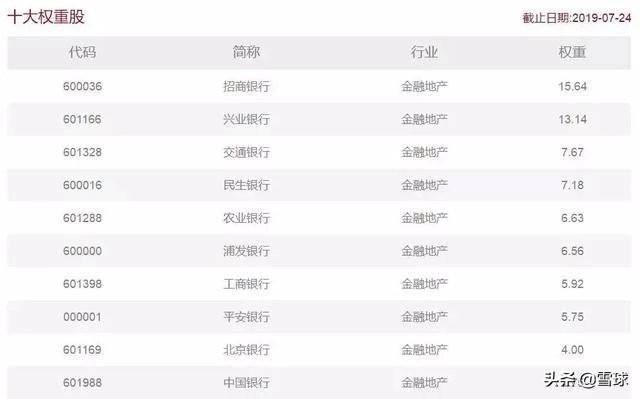 代表整个银行业的指数是中证银行指数,这个指数的前十大重仓股如下表所示: