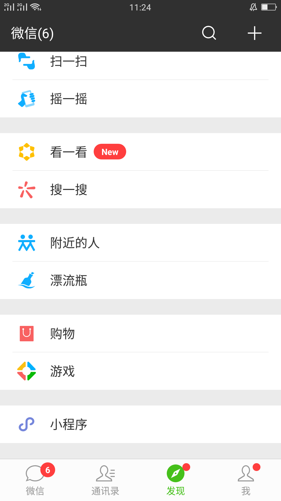 (1)首先打开微信,在微信底部找到【发现】页,点开发现可以看到【小程序】一栏;