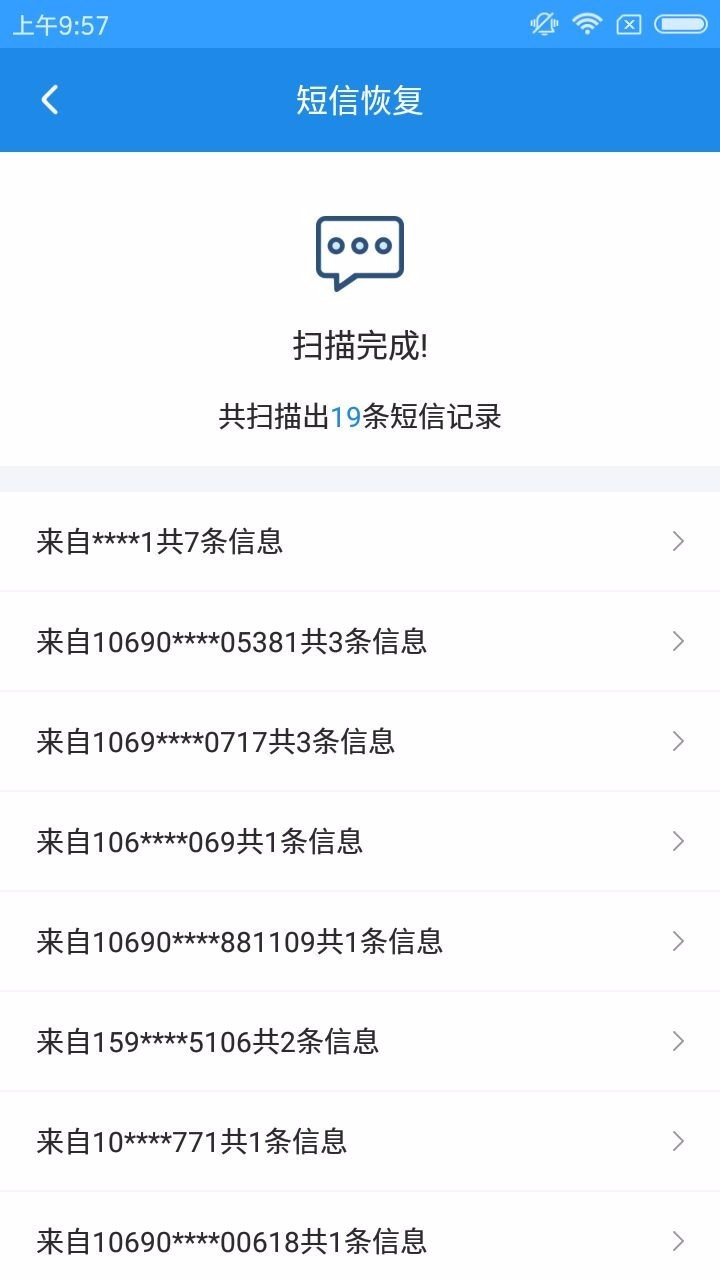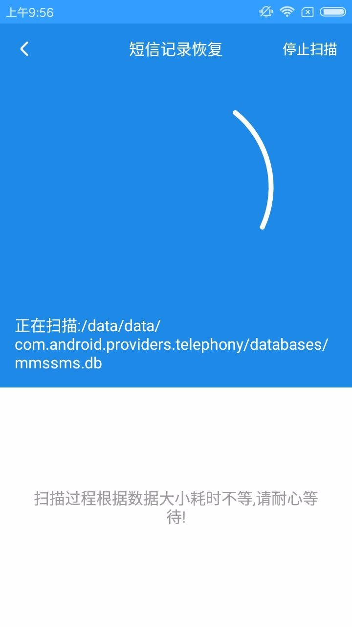 (3)这里以【短信恢复】为例。点击【短信恢复】,系统会进入自动扫描的页面;