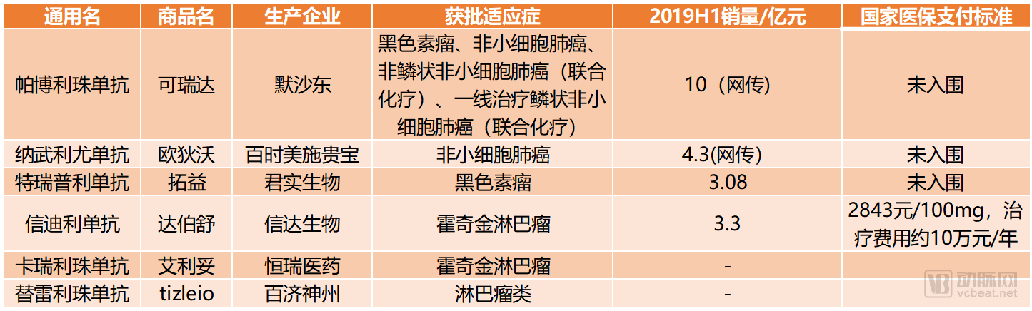 继2018年君实生物的拓益和信达生物的达伯舒上市之后,恒瑞医药和百济神州的PD-1单抗也在2019年相继获批。至此,申报NDA的4个国产PD-1单抗品种全部上市,竞争正式进入适应症拓展阶段。