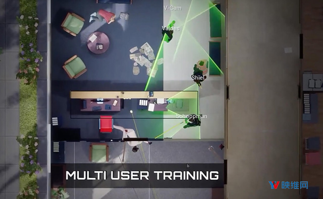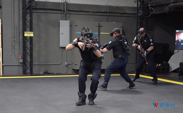 助推这一趋势的新兴厂商之一是V-Armed。他们研发的大规模多人培训模拟允许受训者在一个巨大的空旷空间中移动,并通过头显,身体传感器,武器道具来体验各种逼真场景。对于这种体验,受训者仿佛真的是与同僚们一起进行战斗。