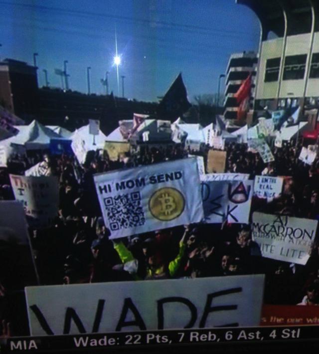 早在2013年,一位美大学生举比特币钱包二维码抢镜,出现在了体育比赛直播上,成功占据了Reddit头版,并成功赢得了价值超过24000美元的比特币。