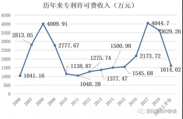 这个专利奠定了朗科公司在U盘界的地位,也是朗科与多家存储公司打官司的利器,靠着这个专利朗科获得了不菲的授权收入。从朗科自己披露的财务数据来看,这件专利自2006年至2019年,已经帮朗科收到了3亿的专利许可费。
