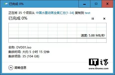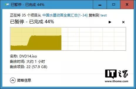 经历了漫长的复制过程后,突然发现平稳的复制速度异常升高了。于是我猜测可能是文件并未“真正复制”导致的复制速度虚高。于是暂停了复制。