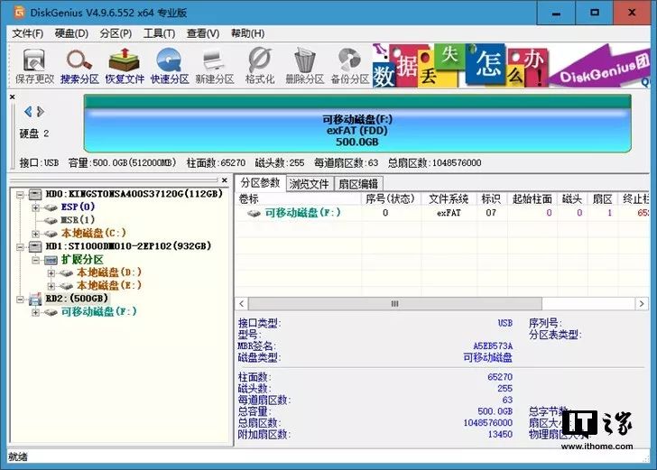 准备使用“DiskGenius”碰碰运气,看看能否查看出一些异常。不过除了发现U盘使用了“USB-FDD”这种已经被淘汰的磁盘驱动器模式,依旧毫无收获。