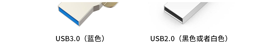 可以通过看插口颜色对U盘进行初步的分辨。一般而言,USB2.0插口塑料片要么是黑色要么是白色,而USB3.0的U盘插片一般都是蓝色的。