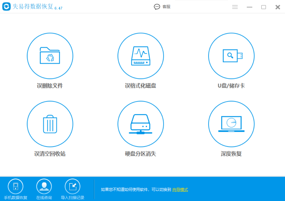失易得数据恢复是专业的数据恢复软件,软件不仅支持u盘数据的恢复,还可以恢复电脑、硬盘、sd卡上的数据。注意,使用软件前需要做好数据保护工作,就是不要再往u盘中写入数据以防数据损坏或覆盖。