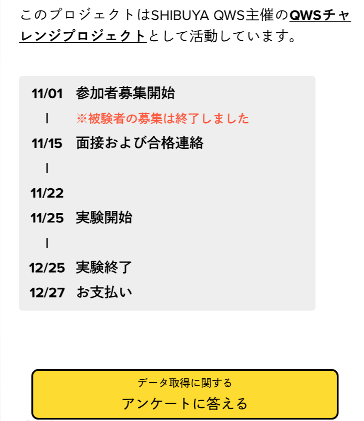 从公司官网,可以发现,这个项目从11月1号开始招募,11月15号面接,将在11月25号进行实验,为其一个月的时间结束后,12月25号结束此项社会实验,目前开放的名额为5人。