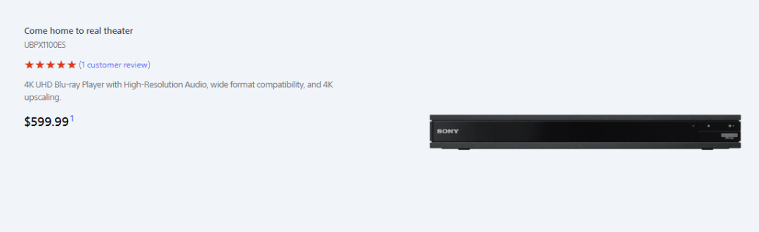 索尼UBP-X1100ES蓝光播放器已经开售,售价599.99美元,国内什么时候上市还不得而知,应该会很快。
