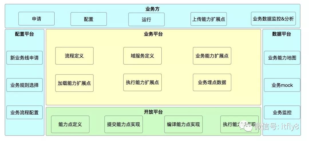 业务与技术 (平台) 的隔离体现了变与不变的关系,虽然这句话被很多人讲过,但不同的系统实现的策略不一样。平台型业务一般要解决 80% 以上的共性问题,20% 左右通过开放来实现。