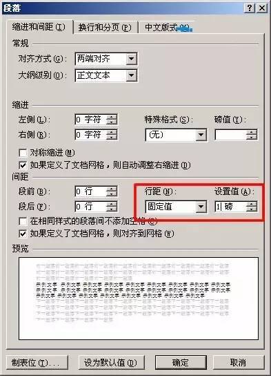 将“行距”设为“固定值”