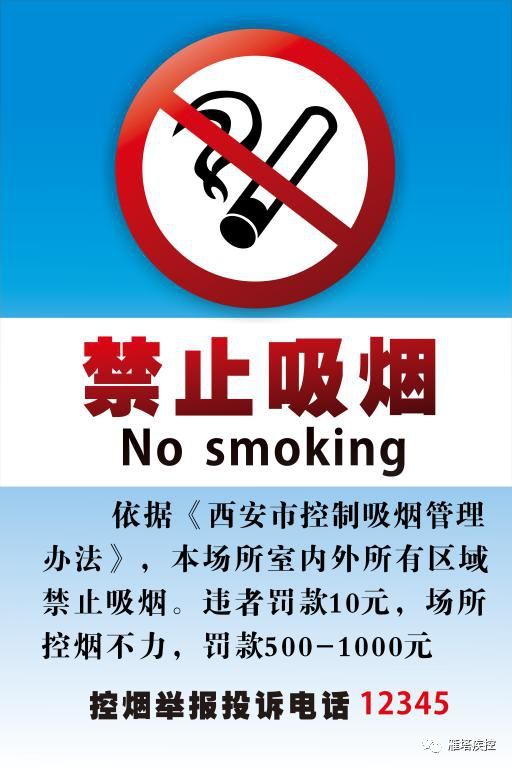 根据《西安市控制吸烟管理办法》第十七条“控制吸烟场所的经营者、管理者应当按照规定设置符合标准的控制吸烟标识”的要求,结合我市实际情况,特制定本张贴规范。