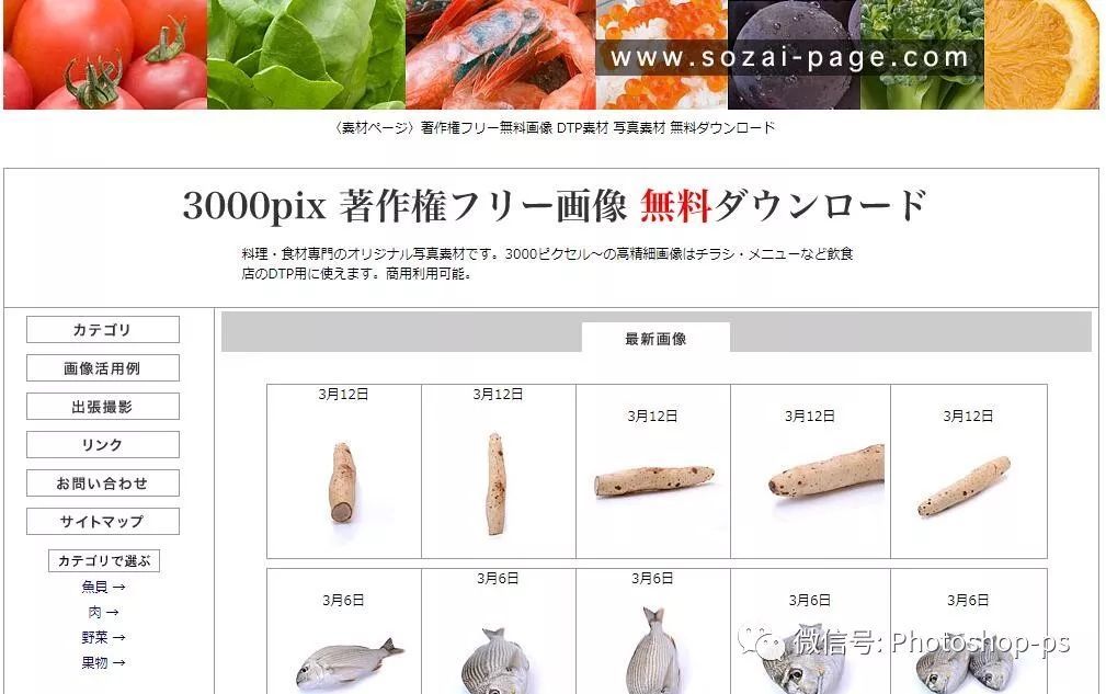 Sozai Page 是一个日本站点,它提供免费无版权的烹饪原始背景图片,包括食品、餐馆菜品、宣传单、菜单图片,等等!网站素材的分类主要有:海鲜类、肉类、蔬菜类、水果类、生活食材类、美食摄影类,等等,网站的操作也是非常简单,找到你需要的图片后,即可直接下载到本地。 Sozai Page 所有的图片尺寸均在3000像素以上,分类详细,查找方便,非常适合于餐饮行业使用。