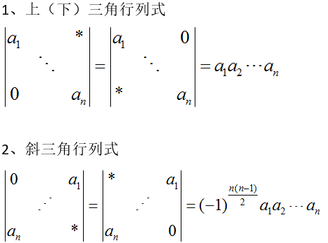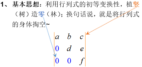 - 三角化法:将行列式化为上(下)三角形行列式.