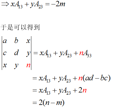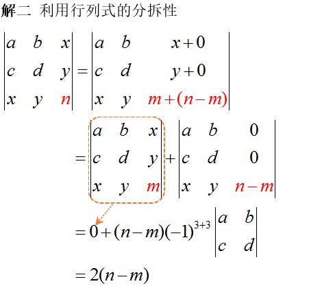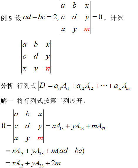 - 展开降阶法:先将行列式某行(列)化出尽可能多的零,然后再按这行(列)展开.