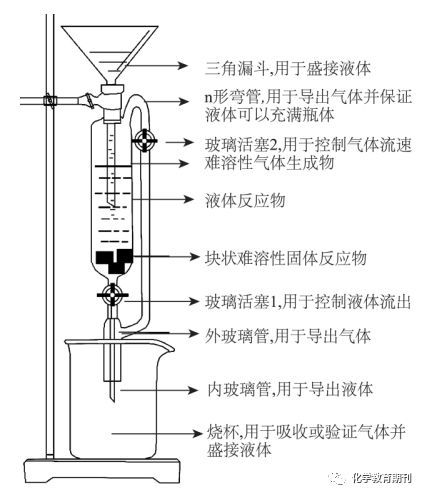 关闭活塞,产生的气体可以将液体压到三角漏斗。打开活塞,点燃气体,产生的气体可以燃烧,如图1所示。