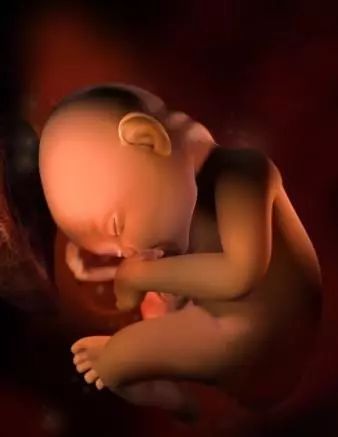 孕12周:胎儿手指和脚趾分开,胎儿初具人形,身长约65毫米,大头约占身体的一半。手指和脚趾已经完全分开,部分骨骼开始变得坚硬,并出现关节雏形。