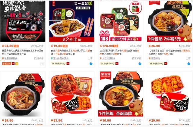 打开某电商平台页面,搜索“自热火锅”,我们可以看到,进行销售的商家达到了上千家,有些店铺的月销售量更是达到了上万件。