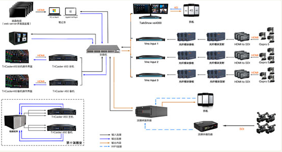 现在很多广电的设备厂家都已经支持NDI,NDI不需要专业的交换机,千兆网交换机就可以,大概可以同时在网络存在100路高清NDI流,通过网络协议你可以从交换机自由调配NDI信号源,整个系统集成的架构会简化了很多。