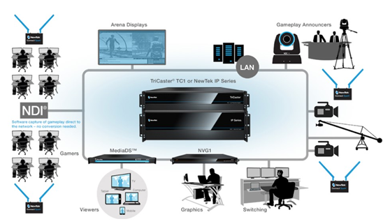 另外,对于复杂的多工序节目制作工作流,部署了NDI后,各个工作环节即可在线分散式并行处理,极大提高了节目制作效率。比如对于一档赛事节目,赛事实时分析、玩家统计、媒体交互、实时回放、慢动作回放处理、以及更多画面处理等,均可同时在线化并行制作。