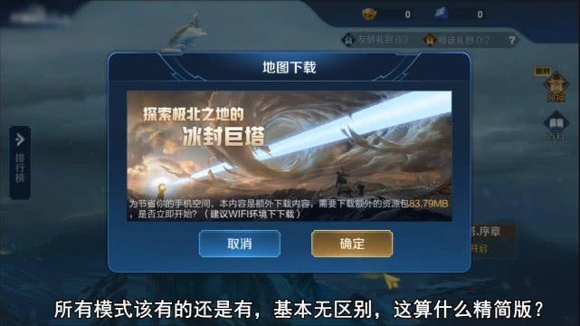 当这位大神玩家把所有界面都看过以后,发现王者荣耀精简版和完整版基本上是一样的。不过,就是日之塔副本模式的地图需要自己下载。看到这里,小编也有种被欺骗的感觉,日之塔副本模式地图在完整版中也是需要自己下载的啊。