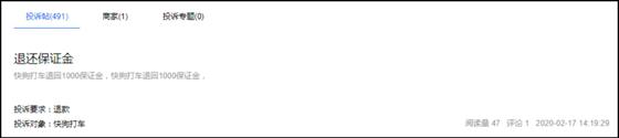 令快狗打车十分尴尬的是,不仅被用户们频频投诉,它还被平台上的司机们集体“嫌弃”。近期,在21CN聚投诉平台上可以看到有多达上百条对快狗打车投诉的信息,其中大部分都是快狗打车平台上的司机们要求“退还保证金”。