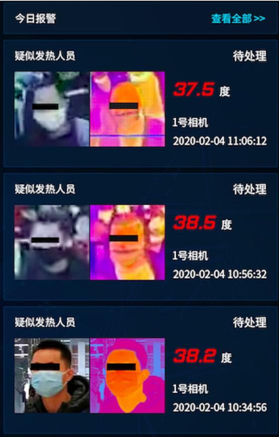 “自动预警”指通过远距离精准测温和人温绑定后,一旦有疑似高温人员出现系统可以实现实时报警功能, 响应时间小于0.5秒,一定程度上实现了“快速+安全”。