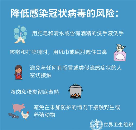 为了降低感染冠状病毒的感染风险,世界卫生组织(WHO)也给出了相应的方法,加强个人的卫生防护。