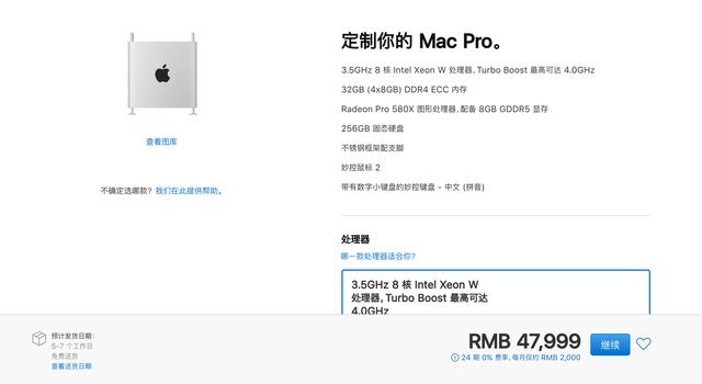 首先我先把苹果官网的配置改成基础版,售价47999元,配置如下: