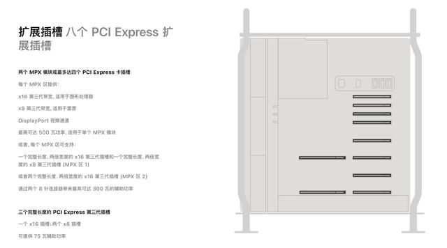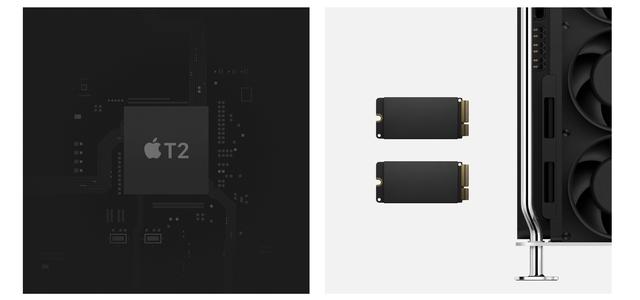 Mac Pro 最高可以选配 8T 的固态硬盘,不过众所周知 苹果在固态硬盘上添加了T2芯片,并将其和硬盘绑定在一起,所以用户无法自行添加/更换。